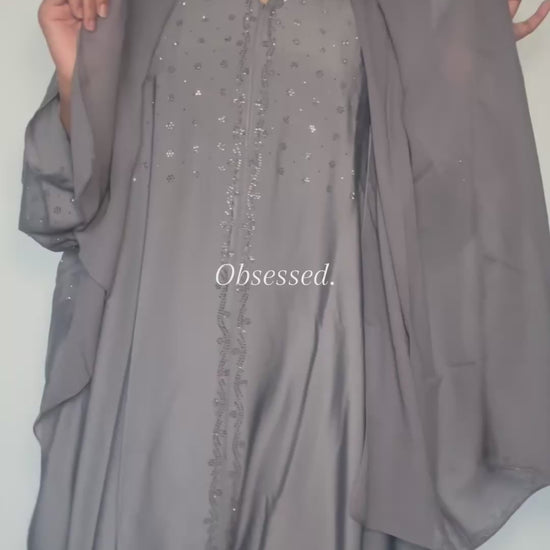 A chic expression of modern elegance. The Inara set features a flowing Farasha silhouette with bold rhinestone details, creating a striking yet sophisticated look.