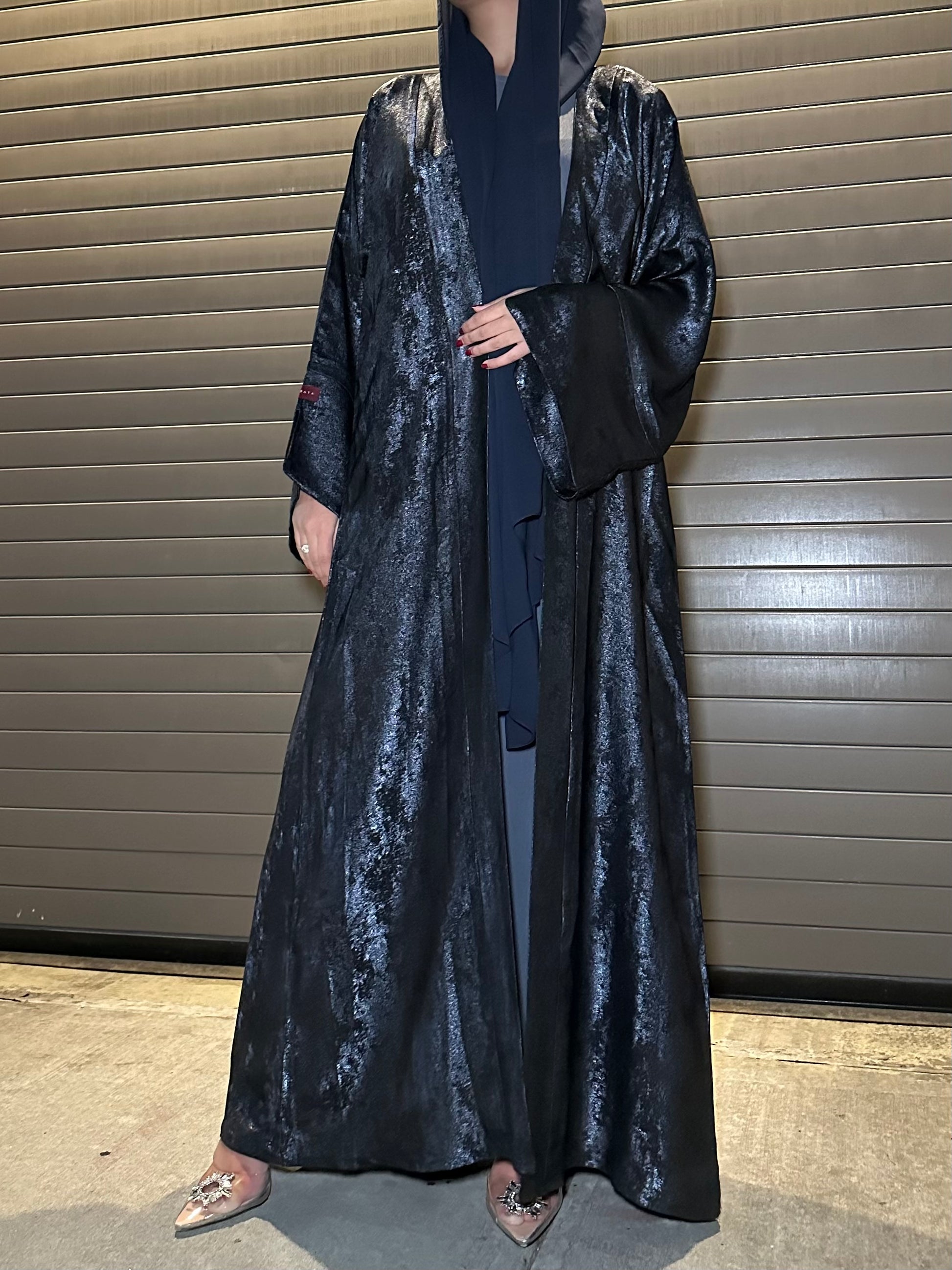 Elevate your style with our 3-piece abaya set featuring a stunning abaya, inner piece, and matching sheila. The abaya, made with a luxurious golden-foil fabric, exudes sophistication. Make a statement with this specially curated set.