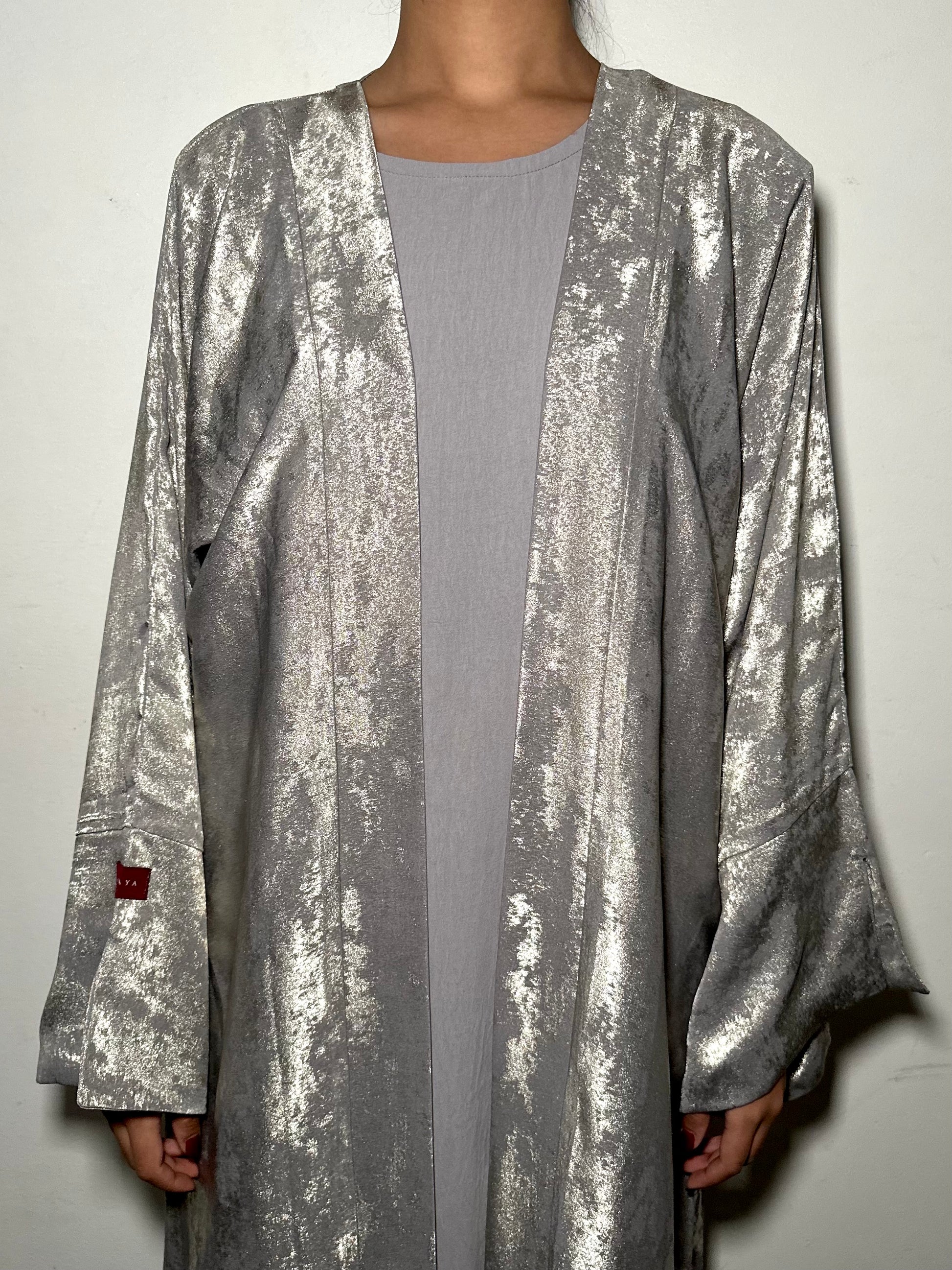 Elevate your style with our 3-piece abaya set featuring a stunning abaya, inner piece, and matching sheila. The abaya, made with a luxurious golden-foil fabric, exudes sophistication. Make a statement with this specially curated set.